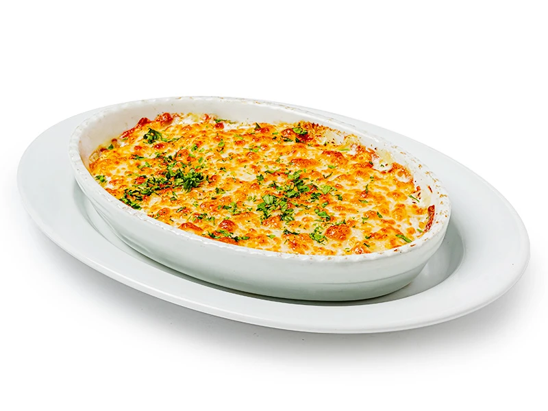 Говяжьи щечки, сливки питьевые, соус Демиглас, картофель, молоко, масло сливочное, сыр Моцарелла, петрушка