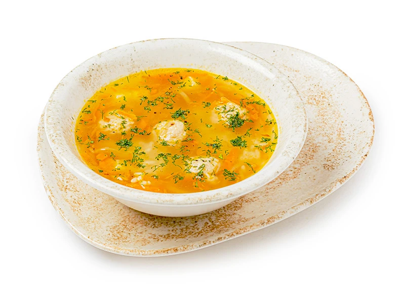 Картофель, фрикадельки из свинины, рис, лук, морковь, специи