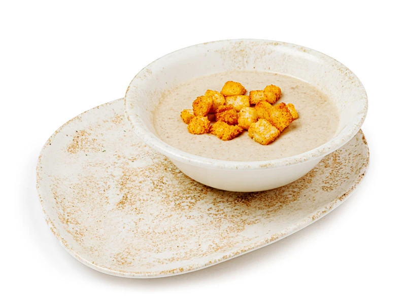Шампиньоны, картофель, лук, чеснок, сливки, масло сливочное, гренки