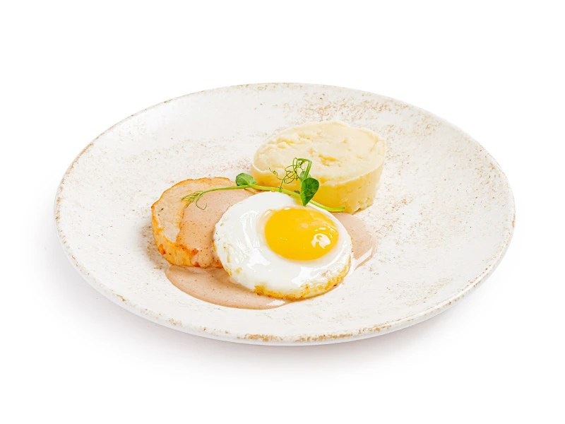 Котлета куриная, сливки питьевые, соус Демиглас, яйцо