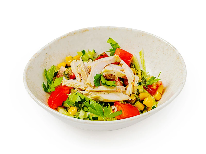 Салат с индейкой, овощами и кукурузой