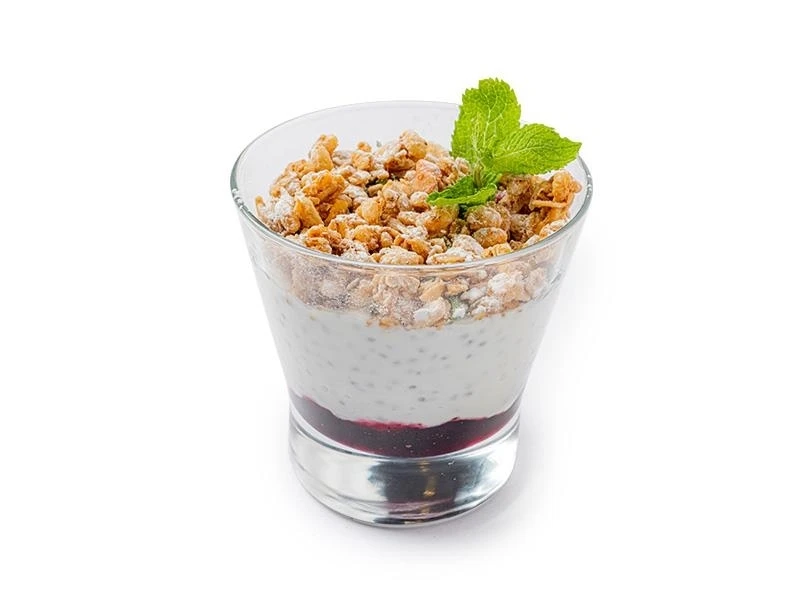 Греческий йогурт, варенье на выбор, гранола, семена чиа, молоко, сахарная пудра, мята Выбери варенье к йогурту:
